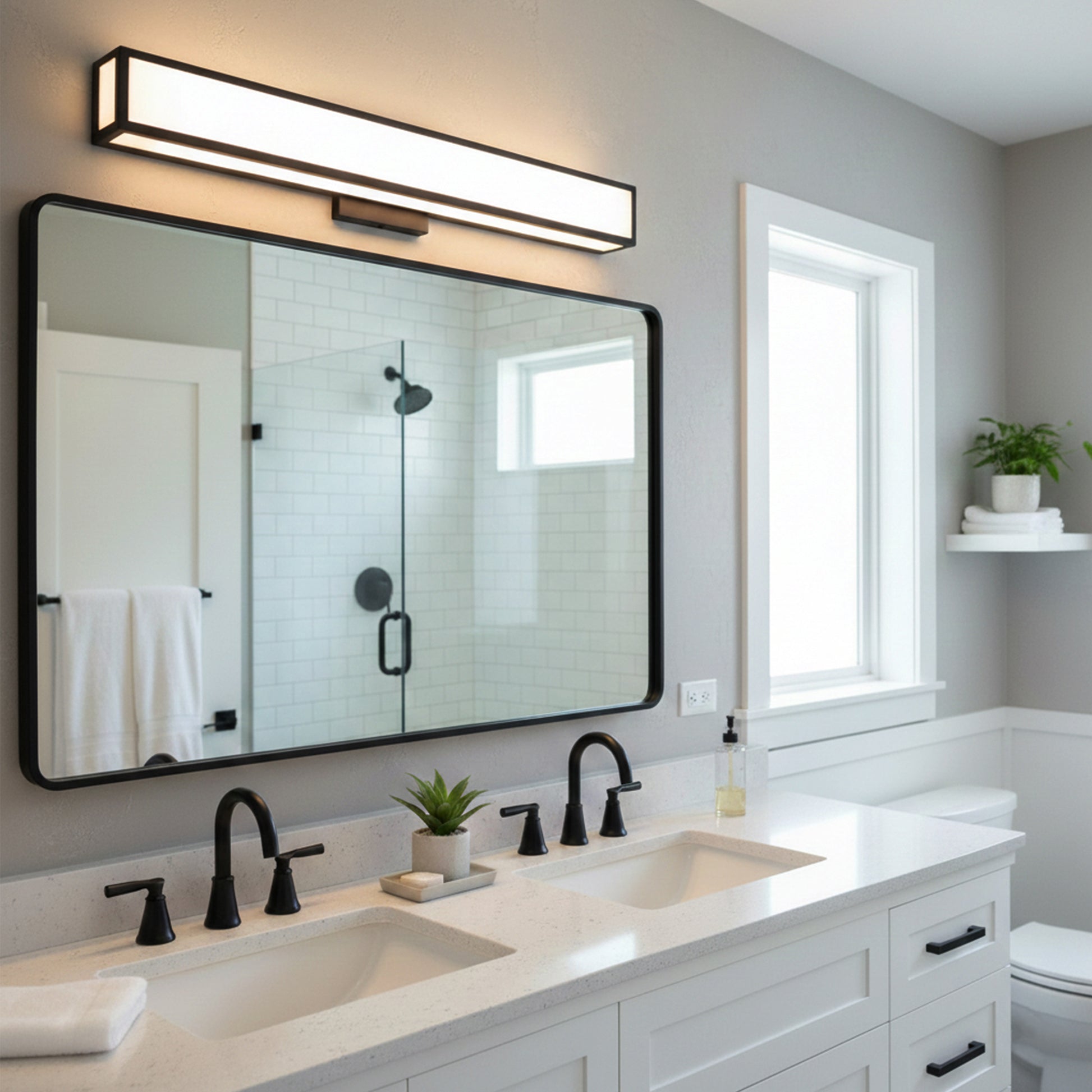 A sleek vanity light built for bright, everyday bathroom use.