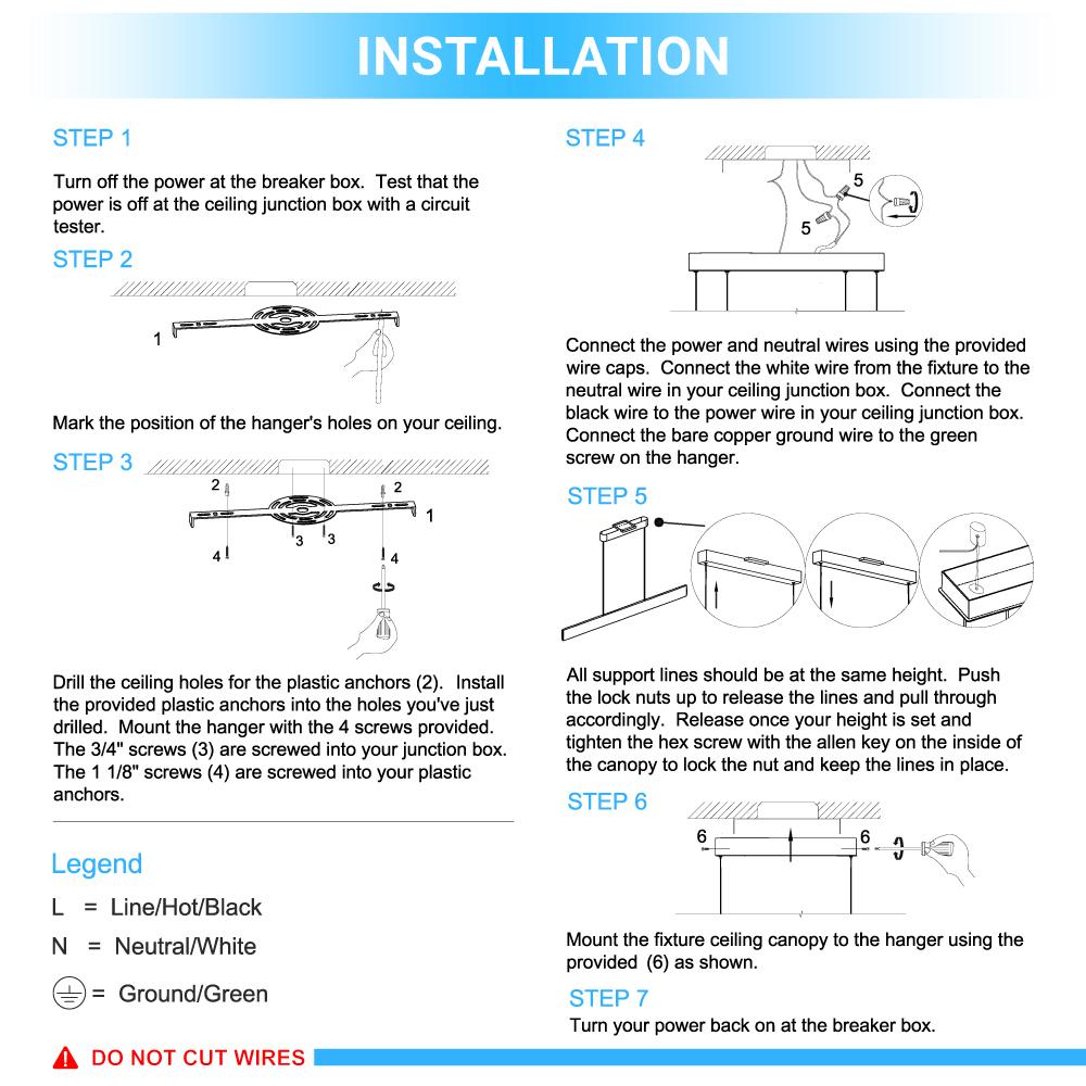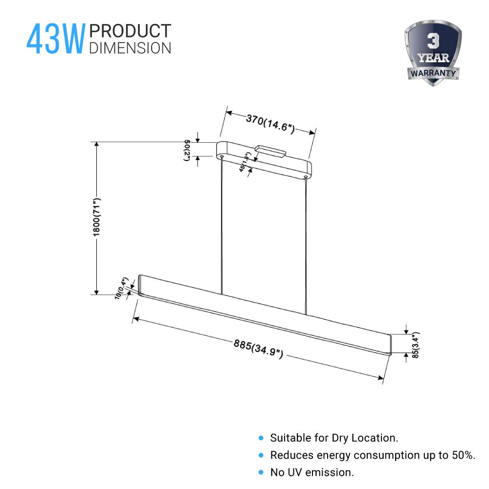LED Linear Pendant 43W, 3000K, Dimmable Linear Pendant Lights